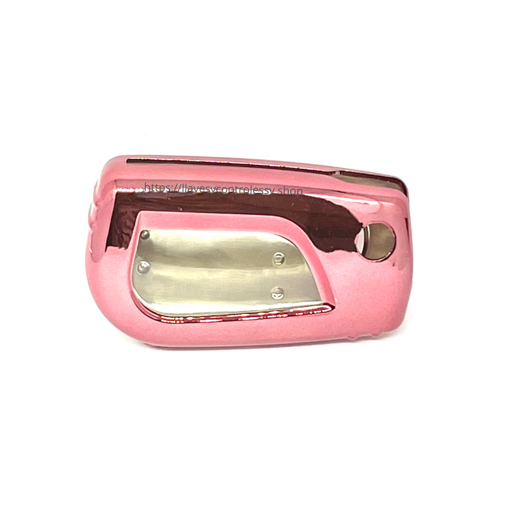 Funda de plástico de colores cromados, azul, negro, plateado, rosado y rojo.